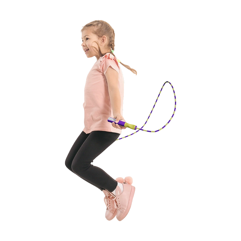 ออกแบบมาสำหรับเด็กและผู้เริ่มต้น ความยาวเชือกปรับได้ 2.8 เมตรจะปรับตามความสูงของเด็ก และเหมาะสำหรับเด็กตั้งแต่วัยเด็กจนถึงวัยผู้ใหญ่ การวางตำแหน่งด้วยนิ้วหัวแม่มือทำให้ง่ายต่อการเรียนรู้และใช้งาน สามารถเขียนชื่อและประเภทไว้บนสายรัดได้ และฝาปิดป้องกันแบบ snap-on ช่วยป้องกันการสูญเสียหรือความสับสน การออกแบบป้องกันการพันกันด้วยเม็ดบีดยืดหยุ่น 130 เม็ด ดีไซน์น้ำหนักเบา 100 กรัมใช้วัสดุน้ำหนักเบาเพื่อความเร็วที่ง่ายดาย ง่ายต่อการเรียนรู้และกระโดด พร้อมการควบคุมที่ยืดหยุ่น ทำให้เด็กๆ ได้รับประสบการณ์ที่ดียิ่งขึ้น ช่วยเพิ่มความสมดุล การประสานงาน สมรรถภาพทางกาย และการทำงานของหัวใจและปอด